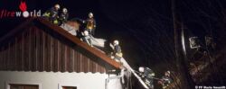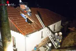 Aufgrund der widrigen Wetterbedingungen wurde ein Baum entwurzelt, welcher auf ein Wohnhaus stürzte und dabei den Dachstuhl teils schwer beschädigte. Anschließend wurden die beschädigten Stellen vom Schutt befreit und mit der Abdichtung des Dachstuhles begonnen. Dies wurde anhand von Planen und diversen Schanzmaterialien erreicht.