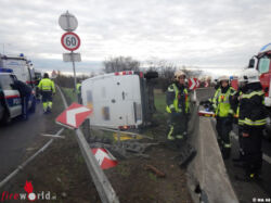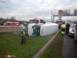 WIEN: Aus bisher unbekannter Ursache wurde am Morgen des 20. März 2017 ein Kastenwagen über eine Betonleitwand bei der Abfahrt von der Südosttangente zur Donauuferautobahn geschleudert. Das Fahrzeug kam auf der Seite zu liegen, der Fahrer kam mit dem Schrecken davon.