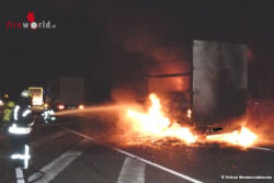 ELDAGSEN (DEUTSCHLAND): In der Nacht auf den 22. März 2017 geriet auf der B 61 in Höhe Eldagsen ein voll beladener Lkw-Anhänger in Brand. Dabei wurden rund 9.000 Flaschen Spirituosen ein Raub der Flammen.
