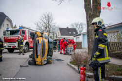 Aus unbekannter Ursache touchierte ein PKW ein parkendes Fahrzeug, durch die Wucht des Aufpralls kippte das fahrende Auto auf die Seite und kam auf der Beifahrerseite zu liegen. Die freiwilligen Feuerwehren Gainfarn und Bad Vöslau wurden gemäß Alarmstufe T2 zu einem Verkehrsunfall mit einer eingeklemmten Person alarmiert. Als die ersten Einsatzkräfte an der Unfallstelle eintrafen konnte aber rasch Entwarnung gegeben werden.