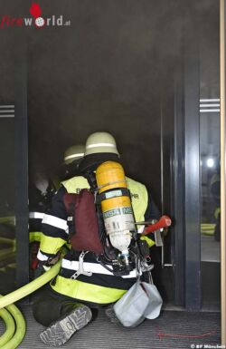 Mit einem vorhanden Schlüssel verschaffte sich der Angriffstrupp Zugang und löschte das Feuer. Da durch einen Lüftungskanal der Rauch auch in den ersten Stock gelangen konnte, lösten dort in zwei Wohnungen private Rauchmelder aus. Die betroffenen Räumlichkeiten, sowie weitere Nutzungseinheiten wurden durch einen zweiten Trupp teilweise gewaltsam geöffnet und kontrolliert.