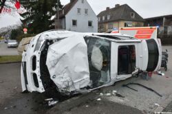 Der Fahrer schlug vor Eintreffen der Einsatzkräfte das Schiebedach ein und stieg zusammen mit seiner zweijährigen Tochter aus dem Fahrzeug. Die beiden wurden leicht verletzt und nach einer ersten Untersuchung vor Ort in eine Münchner Klinik transportiert. Der Schaden wird insgesamt auf etwa 60.000 Euro geschätzt. Die Polizei hat die Ermittlungen zum Unfallhergang aufgenommen.
