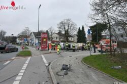 MÜNCHEN (D): Am Morgen des 25. März 2017 hat sich in Moosach ein Verkehrsunfall mit zwei Verletzten ereignet. Die Berufsfeuerwehr und Freiwillige Feuerwehr München rückten gemeinsam zu diesem Einsatz aus.
