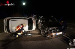 Der SUV wurde mit Rangierrollern abtransportiert und gesichert abgestellt. Das zweite Unfallfahrzeug wurde zurück auf die Räder gestellt und ebenfalls gesichert abstellt. Dazu wurde der Verkehr wechselweise angehalten werden. Nach ca. einer Stunde konnte der Einsatz beendet und die Einsatzbereitschaft wiederhergestellt werden.