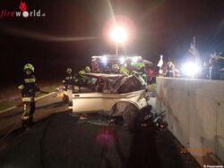 GARSTEN (OÖ): Die Feuerwehren Aschach und Garsten wurden am 25. März 2017 zu einem Verkehrsunfall mit eingeklemmter Person alarmiert. Eine Fahrzeuglenkerin ist mit einer weiteren Insassin mit ihrem Pkw mit hoher Geschwindigkeit frontal gegen eine Betonmauer geprallt.