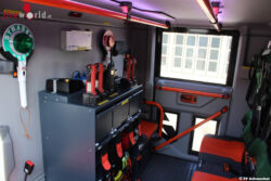 Zur schonenden Rettung von verunglückten Personen aus Fahrzeugen, Höhen und Tiefen befindet sich eine Korbschleiftrage, ein Spineboard sowie Befestigungs- und Hebezubehör in einer Geräteablage, welche es ermöglicht die Gerätschaften aus beiden Fahrzeugseiten zu entnehmen.