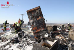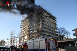 Die Berufsfeuerwehr Augsburg setzte zwei Drehleitern zur Brandbekämpfung ein. Ein weiteres C- Druckluftschaumrohr wurde über das Treppenhaus vorgenommen. Schon kurze Zeit später konnte „Feuer aus“ gegeben werden. Brandursache: Vermutlich durch Dachdeckerarbeiten. Vier Personen wurden vom Notarzt/ Rettungsdienst mit Verdacht auf eine Rauchgasvergiftung untersucht. Alle Bewohner konnten wieder zurück in ihre Wohnungen. Hoher fünfstelliger Brandschaden.
