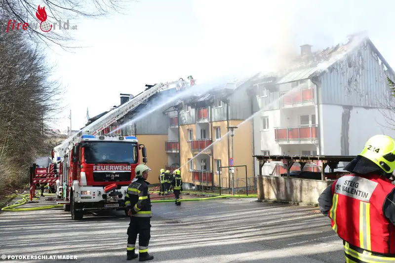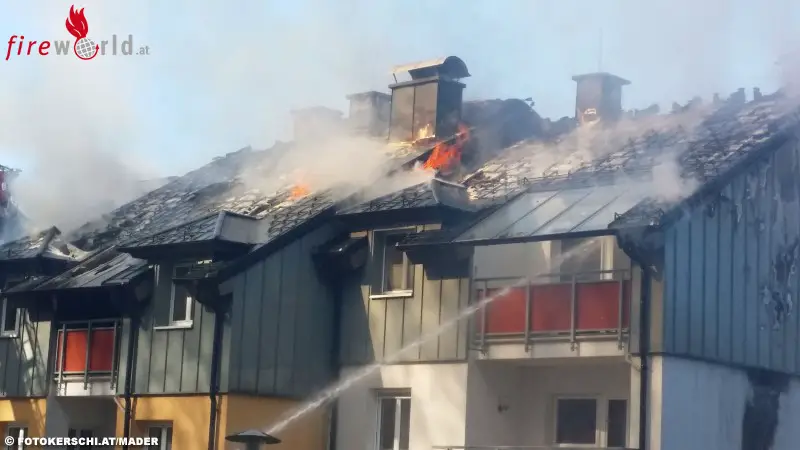 HAAG (NÖ): Im niederösterreichischen Haag stand am Vormittag des 28. März 2017 ein Dachstuhl eines Wohnblock in Flammen. Es gibt laut Auskunft der Einsatzleitung aktuell eine verletzte Person.