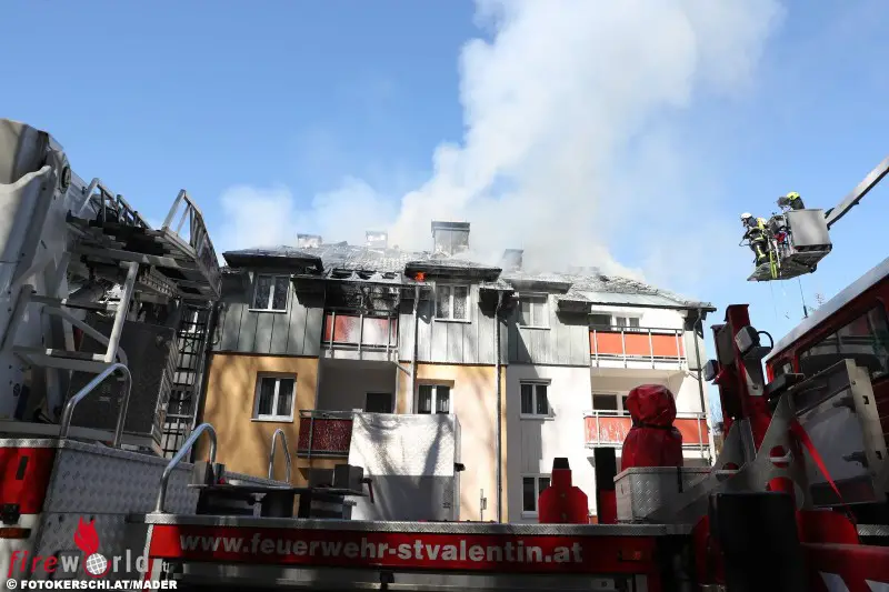 Zehn Feuerwehren waren seit 8.30 Uhr mit 120 Mitgliedern im Einsatz. Ein Ende der Arbeiten war vorerst nicht abzusehen, teilte Resperger mit. Die Helfer kämpften mit Atemschutztrupps, einer Drehleiter und mehreren Löschleitungen gegen eine weitere Ausbreitung der Flammen, die sich dem Sprecher zufolge durch die isolierte Außenfassade durchgefressen hatten. Zudem hatte sich das Feuer über einen Installationsschacht vom Dachstuhl des dreistöckigen Hauses bis zum Keller ausgedehnt.