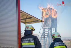 ENGELMANNSBRUNN (NÖ): Ein höchst ungewöhnliches Brandobjekt hatten die Feuerwehren aus Engelmannsbrunn und Kirchberg am Wagram am 28. März um 9.30 Uhr zu löschen: Ein Hochstand an einer Geländekante einige hundert Meter vom Dorf entfernt war in Brand geraten und stand – wohl aufgrund seiner Imprägnierung – lichterloh in Flammer. Zuvor hatte offenbar die darunterliegende Böschung gebrannt.