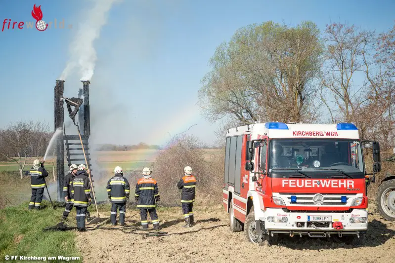 ENGELMANNSBRUNN (NÖ): Ein höchst ungewöhnliches Brandobjekt hatten die Feuerwehren aus Engelmannsbrunn und Kirchberg am Wagram am 28. März um 9.30 Uhr zu löschen: Ein Hochstand an einer Geländekante einige hundert Meter vom Dorf entfernt war in Brand geraten und stand – wohl aufgrund seiner Imprägnierung – lichterloh in Flammer. Zuvor hatte offenbar die darunterliegende Böschung gebrannt.