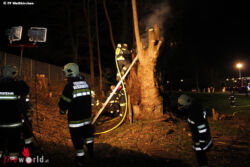 WEISSKIRCHEN (OÖ): Die FF Weißkirchen wurde am 28.03.2017 um 21.37 Uhr zu einem Brand eines Baumes alarmiert. Am Einsatzort bemerkte ein Anrainer, dass in der Nachbarwiese ein großer, hohler Baum brennt und alarmierte die Feuerwehr.