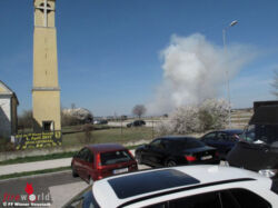 Mehr als 100 Feuerwehrleute von acht Feuerwehren standen im Einsatz und demonstrierten dem anwesenden Verteidigungsminister Hans Peter Doskozil (SPÖ), die Schlagkraft des Ehrenamtes. Dieser war in der Flugfeldkaserne in Wiener Neustadt bei einem Spatenstich für den Bau eines neuen Gebäudes für das Jagdkommando zu Besuch.