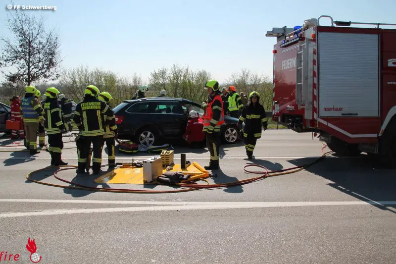 SCHWERTBERG (OÖ): Gemeinsam mit den Feuerwehren FF Aisting-Furth, Freiwillige Feuerwehr der Stadt Perg und FF Haid wurde die Freiw. Feuerwehr Schwertberg um 11:36 Uhr des 1. April 2017 zu einem Verkehrsunfall auf der B3 höhe KCS alarmiert.