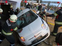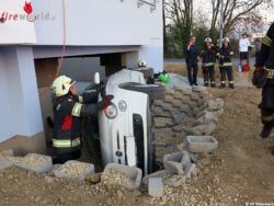 Am Einsatzort stellte sich heraus dass es sich um keinen Fahrzeugbrand sondern um einer Fahrzeugbergung handelte. Aus bisher ungeklärte Ursache kam ein Pkw von der Straße ab und fuhr in einen ca. 1 m tiefen vorbereich einer Tiefgarage. Mittels Kran wurde das Fahrzeug geborgen und Sicher abgestellt! Nach ca. einer Stunde war der Einsatz beendet.