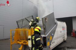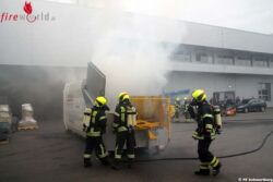 Oö: Brennender Abfallcontainer mit Stapler aus Firmenhalle gebracht