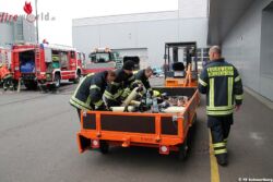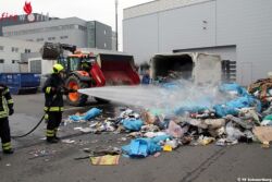 SCHWERTBERG (OÖ): Um 10.29 Uhr wurde die Feuerwehr Schwertberg am 5. April 2017 zu einem Containerbrand bein einer örtlichen Firma alarmiert. Beim Eintreffen des ersten Fahrzeuges wurde der Abfallcontainer gerade von Mitarbeitern mithilfe eines Gabelstaplers aus dem Firmengebäude gebracht und somit ein größerer Schaden verhindert.