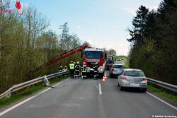 WERNSTEIN (OÖ): Zu einem Verkehrsunfall wurde die Feuerwehr Wernstein am 6. April 2017 um 8.35 Uhr alarmiert. Zwischen Schärding und Wernstein war ein Pkw von der Straße abgekommen, auf die Leitschiene aufgefahren und im Anschluss über eine ca. sechs Meter hohe Straßenböschung abgestürzt.