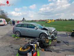 Der Pkw-Lenker erlitt leichte Verletzungen. Am Pkw sowie am Motorrad entstand erheblicher Sachschaden. Die Feuerwehr barg die Unfallfahrzeuge und entfernte die Wrackteile aus dem Kreuzungsbereich.
