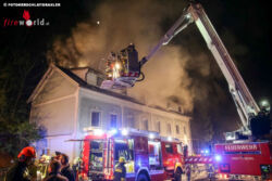 ALTENBERG (OÖ): Sieben Feuerwehren waren Samstagabend, 8. April 2017, beim Brand in einer Asylwerber-Unterkunft in Altenberg bei Linz im Einsatz. Die 28 Bewohner blieben unverletzt.