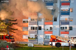 MÜNCHEN (BAYERN): Am frühen Abend des 8. April 2017 kam es im Stadtteil Pasing zu einem Zimmerbrand in einem Hochhaus. Beim Eintreffen der Feuerwehr München drang dichter Rauch aus einem Fenster im zweiten Obergeschoss des Gebäudes.