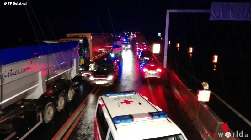 SELZTHAL (STMK): Die Feuerwehr Selzthal wurde am Samstag, den 08.04.2017, um 05:12 Uhr mittels Sirene und SMS Nachricht zu einem Verkehrsunfall mit mehreren verletzten Personen auf der A9 zwischen dem Selzthaltunnel und Knoten Selzthal gerufen.