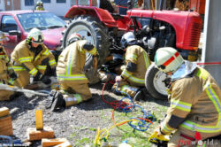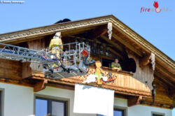 Der Tennen stand im Vollbrand, Durch einen Unterirdischen Gang war auch der Keller des Wohnhauses stark verraucht, 10 Personen konnten sich nicht mehr befreien und Flüchteten auf den Balkon des Wohnhauses, Der Landwirt wollte noch einen Traktor retten und übersah hinter ihm ein Auto welches er touchierte und eine Person unter dem Traktor einklemmte. Unverzüglich alarmierte der Einsatzleiter sämtliche Feuerwehren das Abschnittes Fügen nach. Es wurden sofort zwei Einsatzabschnitte gebildet. Die Drehleiter aus Fügen übernahm die Personenrettung vom Balkon, alle 10 Personen konnten unverletzt geborgen werden. Unter schwerem Atemschutz wurde das Kellergeschoss des Wohnhauses durchsucht und es konnten vier verletzte Personen geborgen und dem Rettungsdienst übergeben werden. Die Feuerwehr Schlitters rückte mit dem Rüstfahrzeug an um die Verletzte Person, mittels Hebekissen, unter dem Traktor zu bergen. Die restlichen Feuerwehren des Abschnittes Fügen stellten die Löschwasserversorgung her. Insgesamt wurden zwei Löschwasserleitungen zum Brandobjekt geführt. Gegen 14:18 Uhr konnte die Übung beendet werden.
