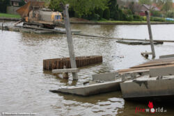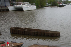 WEENER (DEUTSCHLAND): Vermutlich in der Nacht auf den 12. April 2017 war im Hafen von Weener ein großer 21-Tonnen-Bagger von einem Ponton ins Wasser gerutscht. Der Ponton hatte Schräglage bekommen. Der Bagger kippte im Wasser auf die Seite und ging fast vollständig unter.