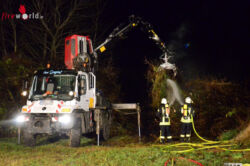 In der Nacht zum Samstag bemerkte eine Dame auf der späten Hundegassirunde gegen Mitternacht, dass das Ahldener Osterfeuer brannte. Beim Eintreffen der Feuerwehr stand der mittlere Bereich des kurz zuvor aufgeschichteten Osterfeuers in hellen Flammen. Problematisch war die Wasserversorgung am etwas abgelegenen Osterfeuerplatz. So forderte Ortsbrandmeister Mario Müller das Hodenhagener Tanklöschfahrzeug nach, um einen Pendelverkehr zwischen der nächsten Wasserentnahmestelle und dem Einsatzort einzurichten. Dank der Unterstützung von Ahldener und Hodenhagener Betrieben konnte mittels Radlader und Kran das eng aufgeschichtete Brennmaterial auseinandergezogen werden, um die eigentlichen Flammen zu löschen. Etwa 90 Minuten nach der Alarmierung konnte "Feuer aus" gemeldet werden.