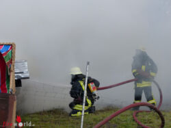 Der folgenschwerste Einsatz war am Ostersonntag gegen 19:00 Uhr in Altenboitzen. Dort brannte ein Wohnwagen, der in einem Holzschuppen untergebracht war. Die Flammen griffen schnell auf den Schuppen über und zerstörten diesen total. Da das Feuer auf ein weiteres massives Nebengebäude sowie eine angrenzende Garage auf dem Nachbargebäude überzugreifen drohte, wurde das Alarmstichwort auf „F3 – Großbrand“ erhöht. Insgesamt waren rund 85 Kräfte aus Altenboitzen, Kirchboitzen, Klein Eilstorf, Südkampen, Hollige und Walsrode im Einsatz. Es wurden zwei B-Rohre und sechs C-Rohre, teilweise unter Atemschutz, eingesetzt. Mittels Drehleiter wurde das Dach des Nachbargebäudes geöffnet, um nach versteckten Glutnestern zu suchen, dazu wurde auch die Wärmebildkamera eingesetzt. Ein Feuerwehrmann verletzte sich leicht am Handgelenk und wurde vom Rettungsdienst ins Krankenhaus gebracht. Die Polizei sowie der Brandschutzprüfer des Heidekreises Folkard Boyer waren vor Ort, die Ursachenermittlung läuft.