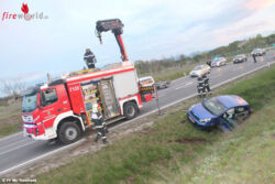 Die Feuerwehr Theresienfeld sicherte gemeinsam mit der Exekutive die Unfallstelle ab, während die FF Wiener Neustadt die Fahrzeugbergungen mittels Kran vorbereitete. Nach der jeweiligen Bergung aus dem Graben wurden die Unfallautos von der FF Theresienfeld von der Unfallstelle verbracht und gesichert abgestellt.