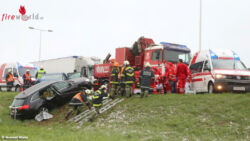 REGAU (OÖ): Zu einem Verkehrsunfall mit eingeklemmter Person wurden die FF Regau und die FF Rutzenmoos am 18.04.2017 von der Landeswarnzentrale alarmiert. Im Bereich des Kreisverkehrs der Autobahnauffahrt sind zwei Pkw zusammengestoßen.
