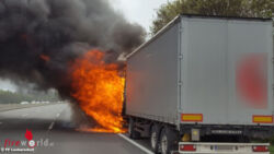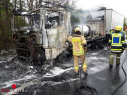 Der Fahrer versuchte noch, mittels tragbaren Feuerlöscher den Brand zu bekämpfen, jedoch war der Brand schon zu intensiv und er konnte den Vollbrand der Zugmaschine nicht mehr verhindern.