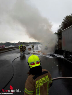 LEOBERSDORF (NÖ): Am Dienstag dem 18.04.2017, kam es auf der A2 Fahrtrichtung Graz aus unbekannter Ursache zu einem Brand eines Lkw. Da der Fahrer den Rauch bereits im Rückspiegel sah, konnte er den Laster auf den Pannenstreifen lenken und sich selbst in Sicherheit bringen.