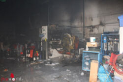 VÖSENDORF (NÖ): Am 19.04.2017 wurde die FF Vösendorf um 21:48 Uhr mit den Alarmstichworten „B3 – Brand in kleinem Gewerbebetrieb“ alarmiert. Kurz darauf rückten die ersten Fahrzeuge aus. Schon während der Anfahrt wurden wir über Florian Mödling darüber informiert, dass es sich um einen Brand in einer Lagerhalle handelt und es möglicherweise gefährliche Chemikalien im Gebäude gibt.