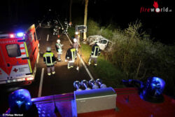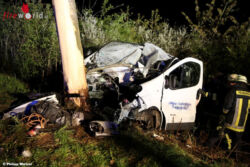 SCHOTTEN (DEUTSCHLAND): Zu einem schweren Verkehrsunfall kam es am späten Donnerstagabend, 20. April 2017, auf der Bundesstraße 276 zwischen Schotten und Gedern. Etwa in Höhe des Schottener Stadtteils Eschenrod prallte ein Kleinbus frontal gegen einem Baum. Dabei wurde der 29-jährige Fahrer aus Gedern schwer verletzt im Unfallwrack eingeklemmt.