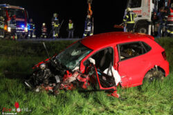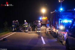 Aus bisher unbekannter Ursache kollididerten zwei Autos frontal. Nachkommende Fahrzeuglenker begannen sofort mit den Erste-Hilfe-Maßnahmen. Feuerwehr, Rettungsdienst, Notarzt und Polizei wurden an die Einsatzstelle gerufen. Eine Frau erlag noch an der Unfallstelle ihren schweren Verletzungen. Der PKW-Lenker wurde nach der Erstversorgung an der Unfallstelle ins Krankenhaus eingeliefert. Die Feuerwehr unterstützte das Abschleppunternehmen bei den Aufräumarbeiten an der Unfallstelle und reinigte die Fahrbahn.