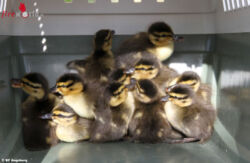 Passanten beobachteten die Enten, hoben das rechteckige schwere Eisengitter an und fingen zählend die Entenküken aus dem Schmutzfangkorb. Unklar war, warum die Enten ohne ihre Mutter „abtauchten“. Die Mutter beobachtete die Entenrettungsaktion, flog dann aber wieder davon und kam nicht mehr zurück. Nach längerem „Enten-Mutter-Warten“, entschloss sich die Berufsfeuerwehr die Entenkinder ins Tierheim zu bringen. Scheinbar hatte sich ein Entenkind etwas verletzt.