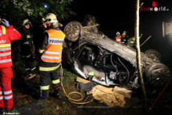 Aus bisher unbekannter Ursache verlor eine Fahrzeuglenkerin die Kontrolle über ihren PKW, kam von der Straße ab und überschlug sich über eine steil abfallende Böschung. Das Auto kam am Dach liegend zum Stillstand. Die Rettung der Autolenkerin gestaltete sich durch die Lage des Fahrzeuges äußerst schwierig. Die Frau musste von der Feuerwehr mit hydraulischem Rettungsgerät aus dem Fahrzeug geschnitten werden. Nach notärztlicher Erstversorgung an der Unfallstelle wurde die Verletzte ins Klinikum Wels eingeliefert. Die Feuerwehr führte anschließend die Bergung des Unfallfahrzeuges durch.