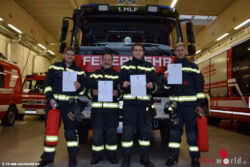 So absolvierten vier Kameraden den zweitägigen Lehrgang zum Atemschutzgeräteträger im Bezirk. Im mehrstufigen Ausbildungskonzept erfolgte somit nach der vorangegangenen internen Übung nun die zweite Stufe. Dabei wurden die Feuerwehrmänner theoretisch und praktisch auf kommende Einsätze unter Atemschutz vorbereitet und ihr Wissen überprüft. Wir gratulieren den Kameraden Mario Kellner, Walter und Jakob Kaminski sowie Sebastian Machaczek zu dieser wichtigen Ausbildung.