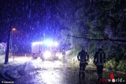 SATTLEDT (OÖ): Ein neuerlicher Wintereinbruch in der Nacht auf Freitag, 28. April 2017, sorgt derzeit für viele Einsätze der Feuerwehr. Viele Bäume halten der Last durch den schweren Schnee nicht stand und knicken um.