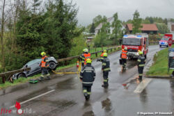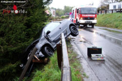 FOHNSDORF (STMK): Ein Verkehrsunfall endete am Donnerstagabend, 27. April 2017, im Fohnsdorfer Ortsteil Wasendorf glimpflich. Gegen 18:20 Uhr kam eine Fahrerin auf der Landstraße 535 von der regennassen Fahrbahn ab und prallte gegen die Streckenbegrenzung. Glück im Unglück für die Lenkerin, das Fahrzeug stürzte nicht über die Böschung in den Pölsbach, sondern verkeilte sich in den Leitschienen.