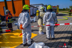 Des Weiteren sei ein Feuer ausgebrochen und die Halle dadurch stark verraucht. Auch zwei Werkstoffprüfer befanden sich noch in der Firmenhalle. Soweit war dies das vorbereitete Übungsszenario.