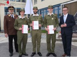Im Rahmen der Siegerehrung gratulierten Landesfeuerwehrkommandant LBD Ing. Alois Kögl, Landesfeuerwehrinspektor LBDS Ronald Szankovich und LAbg. KO Géza Molnár den 19 erfolgreichen Bewerber und Bewerberinnen zum Erwerb des Leistungsabzeichens in Gold.