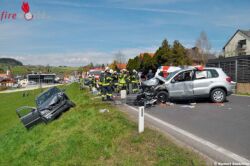 Vier Personen wurden von der Feuerwehr, dem Notarzt und der Rettung erstversorgt. Eine Person wurde mit dem Notarzthubschrauber, die weiteren Verletzten mit Bodengebundenen Rettungsmittel ins Krankenhaus transportiert. An beiden Fahrzeugen entstand schwerer Sachaschaden.