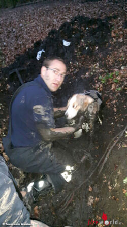 Deutschland: Feuerwehr Arnsberg befreit in dreistündigem Einsatz Hund aus Schlamm-Rohr