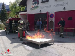 Bei der praktischen Übung mit Handfeuerlöschern konnten die jungen Feuerwehrleute echte Flammen löschen und die erlernte Theorie in die Praxis umsetzen. Ein herzlicher Dank gebührt an dieser Stelle der Firma Zerza Flüssig Gas GmbH, welche die gasbefeuerte Handfeuerlöscher-Übungsanlage kostenlos zur Verfügung stellte.
