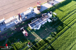 Gegen 19 Uhr konnte dann mit dem Kranfahrzeug der Feuerwehr Enns mit der Bergung der Zugmaschine und des Sattelauflegers begonnen werden.