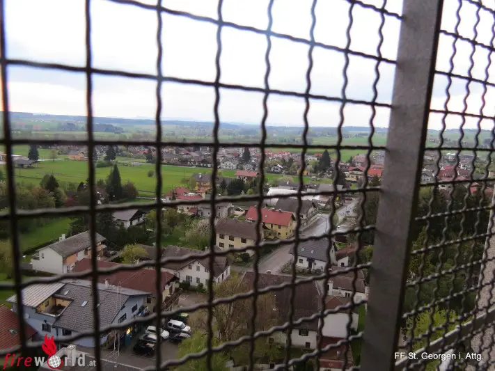 Oö: Atemschutzträger am 72 m Kirchturm von St. Georgen im Attergau