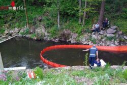 ENGERWITZDORF (OÖ): Die Freiwillige Feuerwehr Schweinbach hatte Mittwochnachmittag, den 4. Mai 2017, eine große Umweltverschmutzung der Gusen durch einen acht Stunden langen Einsatz erfolgreich abwenden können.